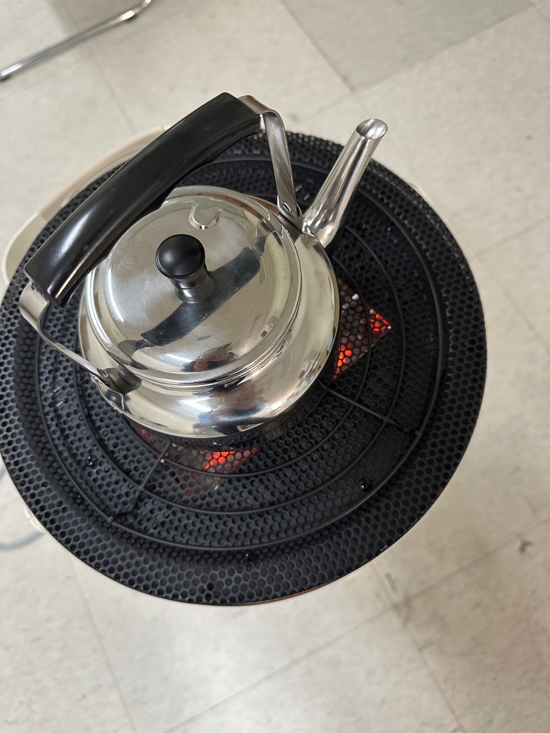 좋습니다. 윗쪽 상부망에는 주전자를 놓고 물을 끓일 수 도
